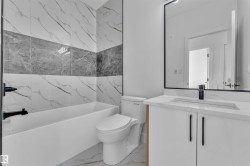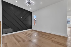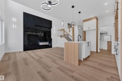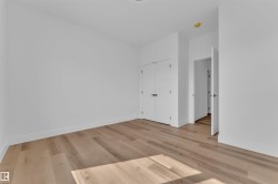 **MAIN FLOOR BEDROOM**SPICE + MAIN KITCHEN**OPEN-TO-BELOW DESIGN**. Modern half duplex in Gorman, North Edmonton, featuring a bright open-concept main floor with side entrance to the basement, a main-floor bedroom with full bath, and a functional spice kitchen. Upstairs offers a spacious primary suite with ensuite, two additional bedrooms, laundry, and an unfinished basement ready for your ideas.