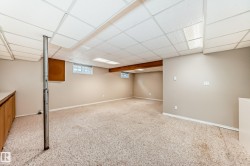 This spacious and upgraded bungalow is situated in the coveted Meyokumin neighborhood. This house has a double attached garage and a CUL-DE-SAC layout. This property features a specious living room, family room which has nine-foot ceilings, a fireplace, and patio doors that lead to your deck, is accessible from the kitchen, In addition to new windows and binds, the entire house has been painted recently. in 2025, the gutters, humidifier, and furnace were replaced. The basement has a sizable recreation area with lots of built-ins and an amazing amount of storage space. There is also a fourth bedroom, a four-piece bathroom, and a roughed-in wet bar. There is an additional entrance that provides access to the basement. The backyard features a fire pit, storage sheds, trees, and more. This fantastic location offers quick access to Anthony Henday Drive, 50th St., and schools, parks, and retail establishments.