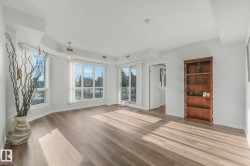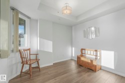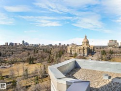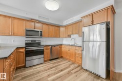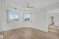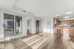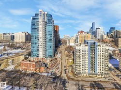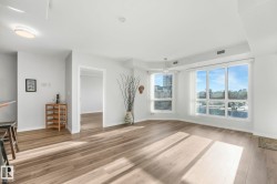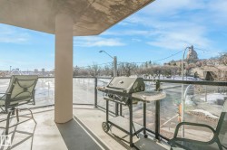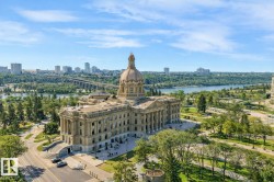 Executive downtown living in this beautifully updated 2 bed, 2 bath, corner unit, located in a well maintained adults only, pet friendly building. This bright & spacious home features brand new flooring & paint throughout, & professionally scraped flat ceilings w no stucco for a clean modern finish. The open concept layout is filled w natural light, while the kitchen offers abundant cabinetry, a corner pantry & breakfast bar, it flows seamlessly into the living & dining areas. Enjoy an expansive wraparound balcony w south facing views of the river & Walterdale Bridge, along w west views toward Symphony Tower. The primary suite includes a walk in closet w a private ensuite featuring a walk in shower. The 2nd bed is ideal for guests or a home office. Additional full bath w soaker tub & a large in-suite laundry room w extra storage. Secure U/G parking, security door entry, an on site gym & rooftop patio complete the package. All w/in walking distance of the river valley, downtown markets and AB Leg building!