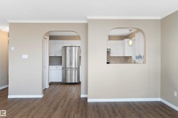 A must-see opportunity to own one of the larger and most private floor plans in the building. This bright, corner-unit condo offers exceptional space & comfort to feel right at home! With over 1,150 sq ft of open-concept living, the beautifully renovated kitchen and spacious living/dining area are perfect for everyday living or hosting family and friends. The split-bedroom layout provides privacy, complete with two full bathrooms, and the added bonus of in-suite laundry + storage. The ideal N-E exposure allows plenty of natural light without getting too hot in the summer. Enjoy your peaceful patio tucked away on a quiet corner of the building, away from busy residential roads. Additional highlights include in floor heating, portable A/C unit, underground heated parking, and a large secure storage room. Just minutes to downtown, all amenities, Riverside Golf Course and the River Valley trails, this well-managed adult, pet-free building also offers a wash bay, fitness room, game/craft room and guest suite.