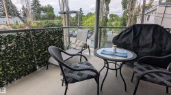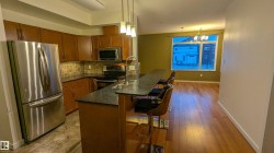 Looking for a calm, impeccably maintained home in the heart of the city? This executive one-bedroom suite offers a rare advantage: a strict no-pet building, perfect for anyone with allergies or those who value a fresh, dander-free living environment. Steps from local markets, boutique shops, cafés, restaurants, downtown and the University, this location blends convenience with upscale comfort. A perfect fit for professionals, students, and anyone seeking a quiet, elevated place to call home. This CORNER suite has been upgraded with a chef-worthy kitchen boasting granite countertops, newer high-end stainless steel appliances, fresh paint, and a premium lighting package. Entertain in style outdoors with a large veranda featuring gas hookups, or snuggle indoors by the fireplace. Additional features include custom closet built-ins, laminate flooring, Hunter Douglas shades, 9-foot ceilings, and concrete and steel construction. TITLED Underground Parking & Storage Locker.