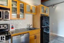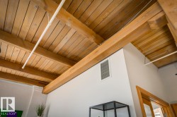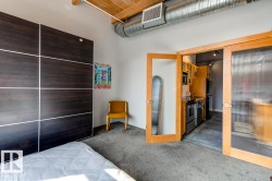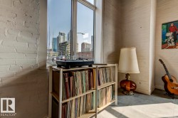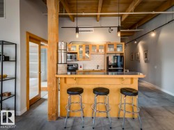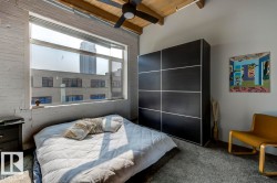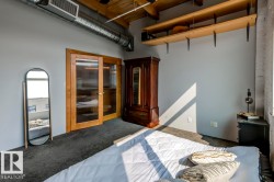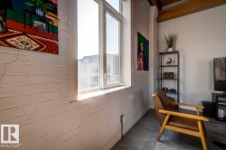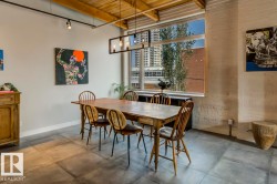 Step into one of Edmonton’s rarest lofts: a top-floor, corner residence in the iconic 1929 John Deere Warehouse, reimagined by DUB Architects as Seventh Street Lofts. This 945 sq ft space delivers true loft living with soaring 13-ft fir-beam ceilings, exposed brick, rare and expansive south- and east-facing windows flooding the loft with natural light. Industrial meets modern with imported porcelain tile, fresh paint, a sleek renovated 4-piece bath, and brand-new A/C. The open kitchen, with stainless appliances and a generous island—is made for hosting, while the private bedroom and full wardrobe keep life effortless. Flexible, bold, and unapologetically different, this loft adapts to your lifestyle. In-suite laundry, parking, and Airbnb-friendly bylaws offer flexibility. Steps to the Ice District, MacEwan, cafés, markets, nightlife, and the future LRT—this isn’t just a home, it’s a piece of Edmonton history you can live in