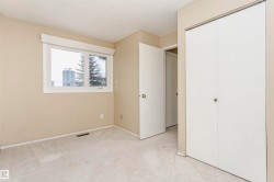 Fully finished 2-storey townhouse offers 1764 sq. ft. of total living space, featuring 4 bedrooms, 2.5 baths. And 2 assigned parking stalls (#21 & #21). The main floor features a large living room with a 2-sided wood-burning fireplace, walk through kitchen to the dining room with access to a private rear deck—perfect for morning coffee or summer BBQs. Upstairs, you’ll find 3 well-sized bedrooms and a 4-pc bath. The fully finished basement provides a spacious rec room, a bedroom, and a 3-pc bath. Quiet and family-friendly complex in Blue Quill, 3-minute walk to the LRT, close to transit, schools, and shopping.