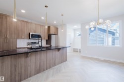 Discover Your Dream Home in Kinglet Gardens. This stunning 3-bedroom, 2.5-bathroom duplex seamlessly blends style and functionality. The main floor boasts 9' ceilings and a convenient half bath, perfect for guests. The beautifully designed kitchen is a highlight, featuring 42" upgraded cabinets, quartz countertops, and a waterline to the fridge. Upstairs, enjoy the flex area, spacious laundry room, full 4-piece bathroom, and 3 generously sized bedrooms. The luxurious primary suite offers a walk-in closet and ensuite. The separate side entrance and legal suite rough in's are an added bonus. Other features include FULL LANDSCAPING, a $3k appliance allowance, unfinished basement with painted floors, high-efficiency furnace, and triple-pane windows. Buy with confidence. Built by Rohit. UNDER CONSTRUCTION! Photos may differ from actual property. Appliances NOT included.