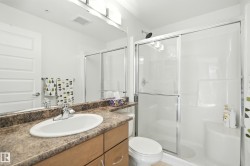 Welcome to Rutherford Gate! This 2-bedroom, 2-bathroom home has unique and rare location where there are NO neighbours on either side of you! On one side is a firewall, and the other a closet room, providing you extra peace and enjoyment! This home features TWO titled parking stalls, one under ground (w/storage cage) and one above ground. Inside this home, you are greeted with an open plan featuring a spacious kitchen w/ceramic tile flooring and bright living rm w/south balcony exposure! The mstr suite is spacious and features a big W/I closet + 3-pc ensuite w/over-sized W/I shower. Bdrm 2 is also a great size with a W/I closet. Completing this home is the spacious 4-pc main bath and in-suite laundry. Updates/upgrades to this home incl. A/C, paint, appliances and newer toilets. Building amenities include a fitness room, guest suite, and games/social room (w/pool and ping pong tables). Located in very close proximity to the future LRT expansion, public transportation, shopping, schools and more!