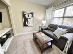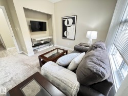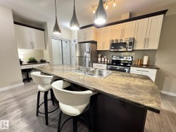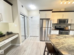 Welcome to the Valour Condominiums in the Village at Griesbach... where nature, convenience and walkability are at the forefront of this award winning community. This 2 bedroom, 2 bathroom unit is meticulously kept and has all of the features and amenities you could possibly want & need. Perfect for seniors, professional couples or singles who work downtown. Features include 9ft ceilings, laminate floor, a wonderful open kitchen with island seating, stainless steel appliances and timeless cabinetry. A beautiful primary bedroom showcases 2 large mirrored walk through closets that lead to a wonderful ensuite with walk-in shower. In-suite laundry, storage & pantry, as well as an 8’x12’ outdoor covered patio space. Heated, underground parking stall, social room with pool table & wet bar (next door), exercise gym (building 504). Invest in a unique, growing community with tons of amenities, walking paths, community gardens, local restaurants & coffee shops, close to YMCA and minutes from the Anthony Henday!