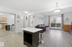 Welcome to this well-kept 1-bed, 1-bath with low condo fee offering a comfortable & convenient lifestyle near Costco, Superstore, Home Depot, Restaurants, Gym/Clareview Community, Library, Movie Theatre and Train Station. Enjoy the new vinyl plank flooring in livingroom and bedroom - Absolutely no carpet. Inside, the open-concept layout features a bright living area, a functional kitchen with ample cabinetry, in-suite laundry with extra storage and modern fridge with hooked up waterline. The spacious & quiet bedroom includes a large closet, and the modern bathroom is designed for comfort. Step out onto your private balcony, complete with a natural gas hookup for BBQ or heat lamp. Enjoy the convenience of a heated, titled underground parking stall. Additional building amenities include a fitness centre. Experience the perfect combination of comfort, convenience, and connectivity—right where you need it.