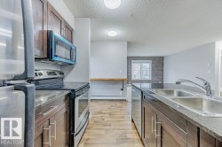 Excellent value two bedroom condo in Walker Lakes. This 964 square foot second floor condo features a bright and open living room, open den or flex space, dining area, and a kitchen that has granite countertops, eat at peninsula, stainless steel appliances, espresso cabinetry, and a breakfast bar. The primary bedroom has a walkthrough closet and four piece ensuite and the second bedroom is also a good size. Other features include two underground parking stalls, rough in for split system a/c, in-suite laundry, and a large corner balcony. Close to walking trails, schools, shopping, public transportation, and quick access to the Anthony Henday and Calgary Trail.