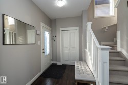 Welcome to this former PACESETTER SHOWHOME with double attached garage in the private & quiet community of Cavanagh. This spacious home is FULLY UPGRADED with CENTRAL A/C, hardwood and vinyl tile flooring, hunter douglas window coverings throughout, REAL WOOD CABINETS, quartz countertops throughout complete with spacious bonus room with vaulted ceilings and built-in speaker system throughout the home. The spacious primary bedroom is has french doors and includes a full 4 piece ensuite with walk-in closet. The fully fenced back yard is landscaped with shed and large two tiered deck. No rear neighbours. Welcome home!
