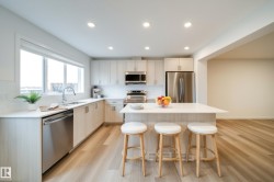 INVESTOR ALERT! Opportunity knocks with this 2023-built 2-storey featuring a custom 1 bed legal suite in the established community of Kirkness. Just a stone throw from Manning Town Centre, Movati, Costco, schools, transit, and the Henday. This location is unbeatable for families or future tenants! The home is bright, welcoming, and move-in ready, starting with a generous foyer and flowing into open-concept living, dining, and a stylish kitchen with smart stainless steel appliances (yes, even an air-frying oven!). A 2-pc powder room and double garage sit conveniently off the entrance. Upstairs offers 3 bedrooms, upper laundry, and a dreamy primary retreat with walk-in closet and 5-pc ensuite. The backyard is spacious and ready for your touch. Downstairs, find yourself in the cozy legal suite. Perfect as a mortgage helper or multi-generational space. Enjoy the high-efficiency boiler system with separate smart thermostats for year-round comfort. Don't miss out on your chance to live while making a living!
