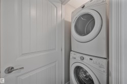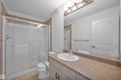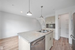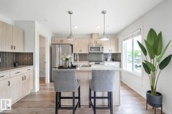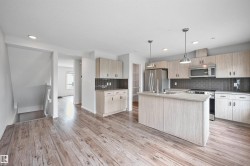 Stunning & well-maintained 3 BED/2.5 BATH townhouse w/ DOUBLE ATTACHED GARAGE in Laurel Landing! Main floor boasts an open concept layout, ample natural light, & vinyl plank flooring. The chef's kitchen is spacious w/ stainless steel appliances, tons of counter space and storage, pantry, subway tile backsplash & large island w/ eating bar. On the upper level, you'll find the primary bedroom w/ 3 pc ensuite bathroom and walk-in closet. Two other well sized bedrooms and a full bathroom complete this level. Nicely-appointed location in complex with front entry patio to unwind with some fresh air. Higher energy efficiency w/tankless hot water & heat recapture for a lower utility bill. This well maintained complex offers visitor parking & is walking distance to tons of amenities, including park/pond. Located close to shopping, a community playground, community league, newer rec centre, schools & public transit.