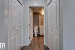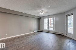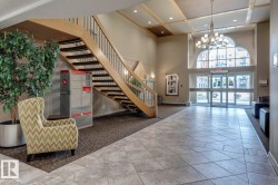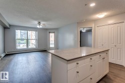 Welcome to this beautifully situated condo in downtown Edmotnon. This well-maintained home features an open-concept layout with a modern kitchen, complete with a central eat-up island, quartz countertops, tile backsplash, upgraded appliances, and vinyl plank flooring. The living area opens onto a large, west-facing covered patio with a gas line for your BBQ, perfect for enjoying sunny evenings. The generous primary bedroom offers his-and-hers closets with direct access to the full bathroom. A versatile den, along with a roomy in-suite laundry and storage area, adds to the functionality. Freshly painted throughout, this unit is move-in ready. Enjoy the convenience of a titled, heated underground parking stall with a storage cage. The building is well-managed with professional management and offers excellent amenities, including a fitness center and guest suite. Ideally located in the heart of the city—just steps to shops, restaurants, public transit, Grant MacEwan, and the Ice District. Virtually staged.