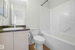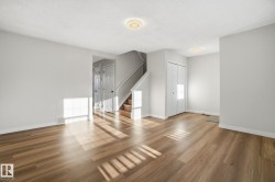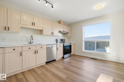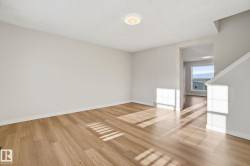 This well-maintained half duplex with a double detached garage is ideal for young families or investors. Conveniently located close to transit, shopping centres, schools, walking trails, and with easy access to major highways. The main floor features a bright living space with new laminate flooring, fresh paint, and new matching light fixtures. The kitchen offers stainless steel appliances, new quartz countertops, and new cabinet door handles, along with a dining nook and 2-piece bath. New laminate flooring continues throughout the upper level. Upstairs includes a spacious primary bedroom with walk-in closet and 4-piece ensuite, two additional well-lit bedrooms, and another 4-piece bath. The fully finished basement offers a large rec room with tile-surround gas fireplace and a laundry area. Recent upgrades include new roof shingles on both the home and garage. The home was previously used as a profitable rental property, making it a great opportunity for investors. Move-in ready!