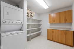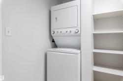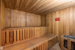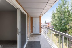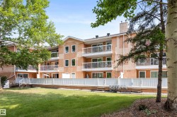 Welcome to this move-in ready TOP FLR, 1150sqft 2 BEDROOM, 2 BATHROOM condo w/ HEATED UNDERGROUND parking! The huge, SOUTH facing balcony fills the unit w/ natural light & offers the perfect spot to relax & soak up the sun while overlooking the park-like courtyard. Inside, the spacious living rm w/ GAS FP leads to your open kitchen, boasting plenty of counter & cabinet space! Retreat to the large primary w/ DBL walk thru closet & 4pc ensuite. A 2nd bedroom & full bathroom welcomes guests or roommates. And the massive INSUITE laundry features loads of storage or even space for a small office! Updates: all fresh paint, fridge (2024), windows (2022), newer roof & window coverings, carpets cleaned. Complex also offers gym, sauna and is wheelchair friendly. Perfectly located near the River Valley, Ice District, LRT & bus routes for easy access to NAIT, MacEwan, UofA & Downtown amenities. 10+