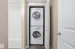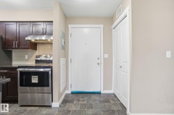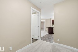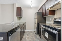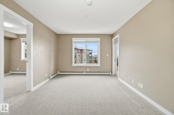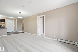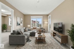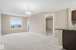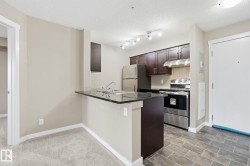 Welcome to the complex, Heritage Valley Station in the family-oriented community of Allard. This well-appointed third-floor condo offers a bright & spacious, open layout and features brand new carpeting throughout. The living and dining areas flow seamlessly together, complemented by a functional galley-style kitchen with granite countertops & SS appliances. Two generously sized bedrooms are thoughtfully positioned on opposite sides of the home for added privacy, along with two full four-piece bathrooms, including a private ensuite in the primary bedroom. A spacious den provides flexible space for a home office or additional living area. Also offering in-suite laundry. Ideal for first-time buyers, investors, or those looking to downsize, this home offers easy, low-maintenance living. Enjoy the large private balcony with a natural gas hookup—perfect for entertaining or unwinding outdoors. Situated close to schools, shopping, dining, walking trails, public transit, and Edmonton International Airport.