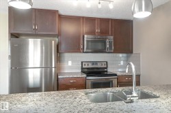West facing balcony in the excellent complex Ara at Summerside, and it comes with Summerside Lake access! Great functional layout w/ bedrooms located on opposite ends of the unit, separated by the open concept living area. The dark rich cabinetry in the kitchen is nicely illuminated with pendant lighting and is accented with subway tile backsplash and granite counters. The chef will love how the kitchen is nicely equipped with stainless steel appliances. The master bedroom has double walk-through closet to an ensuite with walk in shower and granite counter. The second bedroom is next to the main bathroom. Soak in the sun on the spacious west facing balcony w/gas line. Amenities in the building include large fitness room plus a social room. One titled underground parking stall (#86) plus storage locker (#101) on the same floor. When you own here, you enjoy private access to all the Summerside Lake amenities including swimming, boating, fishing, tennis, skating. Close to schools, shopping, transportation