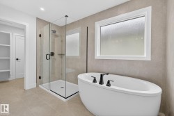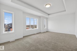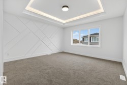 This stunning brand-new home built by Homes by New Era delivers exceptional modern living with 4 bedrooms and 3 full bathrooms, thoughtfully designed to impress from the moment you walk in. The main floor features an open-to-above great room that fills the home with natural light, along with a spacious main floor bedroom and full bath, perfect for guests or a private home office. The chef-inspired kitchen includes quartz countertops, ceiling-height cabinetry, and a walkthrough pantry, blending style and function for effortless cooking and entertaining. Upstairs, retreat to the luxurious primary suite, complete with a walk-in closet that connects directly to the laundry room for ultimate convenience. A stylish bonus room with a tray ceiling offers the ideal space for family movie nights or quiet relaxation. Modern touches continue throughout, triple-pane windows, a tankless gas hot water system, a garage floor drain and BBQ + Garage gas line. Appliances and blinds included!