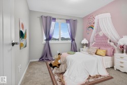 BACKING ONTO A WALKING TRAIL, a short stroll away from the park and ravine! Step into this charming home to a spacious foyer & large closet, flowing into an open concept layout, a bright kitchen with a WALK-IN PANTRY, dining, living area with big windows, serene view and natural light plus a convenient 1/2 bath. Upstairs features 3 GENEROUS BEDROOMS, upper laundry, 3pc bath, and a relaxing family BONUS ROOM with a tranquil VIEW. The PRIMARY SUITE includes a WALK-IN CLOSET w/4pc ensuite and the 2 additional bedrooms with a modular built-in closet for added convenience. The lower level has a SIDE ENTRANCE to an undeveloped basement ideal for future development or a potential secondary suite. Enjoy a fenced, landscaped yard with an EXPANSIVE DECK perfect for BBQ and entertaining. Close to the parks, shopping, Meadows Rec Centre, transit, and quick access to Anthony Henday & Whitemud. This beautiful home offers comfort, active lifestyle, and incredible flexibility for a family looking for room to grow!