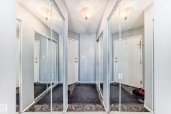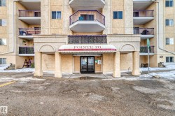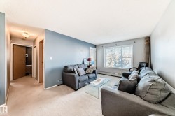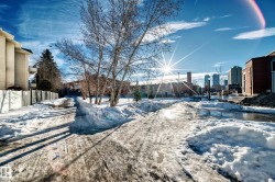 Impressive corner unit w/a thoughtfully designed layout, flooded w/natural light. The open, spacious L/R includes a dedicated D/R area and flows seamlessly into a versatile kitchen featuring ample cabinetry, a window for added brightness, & a fun chalkboard accent. The o/s primary bedroom offers a walk-in closet and a 4pc ensuite, while the generously sized second bedroom is ideal for guests or a home office. A second 4pc bath adds everyday convenience. Step outside to your private balcony, conveniently located off the L/R & overlooking green space & parking. Additional highlights include in-suite laundry & storage and an energized parking stall. The true standout is the unbeatable location. Enjoy quick, gated access to the Edmonton Brewery District, a vibrant lifestyle hub with trendy shops, dining, breweries, fitness studios, and groceries. Just minutes from Grant MacEwan, transit, the Ice District, countless urban amenities, this home offes the perfect balance of comfort, convenienience & city living!