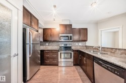 PREMIUM CONDO LIVING IN AN UNBEATABLE LOCATION! Welcome to luxury condo living in a property where compromises aren't necessary. This unit features 2 bedrooms, 2 FULL bathrooms, 2 parking stalls & 2 storage units! Enjoy an excellent layout with endless natural light & space for all lifestyles. Surround yourself with luxury at every turn, including a stunning kitchen w/ granite countertops, stainless steel appliances, tile backsplash & pantry. The spacious living area features a fireplace & direct access onto the spacious balcony. Both bedrooms are large, including a primary w/ walk-through closet & FULL ensuite! If comfort is important to you, you will find it here. Stay cool all summer w/ A/C, keep your cars warm all winter w/ heated underground parking! Enjoy the benefits of in-suite laundry & 2 storage rooms. You'll appreciate the ON-SITE GYM, WOODWORKING SHOP, GUEST SUITE & CAR WASH BAY! You're can also walk to everything Whyte & Old Strathcona has to offer. Immediate possession available!