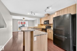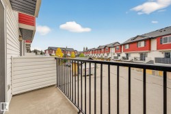 Spacious modern Tamarack townhouse backing onto a peaceful green space. Bright open-concept main floor with a large kitchen, maple cabinets, tile backsplash, and a generous island with eat-up bar, perfect for hosting friends or casual weeknight dinners. The bright living room features patio doors that open onto a sunny balcony. A 2-piece bath and mud room complete this level. Upstairs, you’ll find two oversized bedrooms both with their own ensuites, large closets and laundry room. Located in a quiet, well-managed complex, you’re just minutes from schools, shopping, parks, and the Meadows Community Rec Centre. Whether you’re a first-time buyer or downsizing, this is low-maintenance living in style.