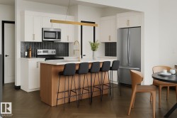 FULLY LANDSCAPED! Welcome to Essential Glenridding, where luxury living meets modern convenience! This stunning new 1bed/1bath condo features new designer finishes that will take your breath away. This End Unit CEDAR offers an open-concept floor plan with a full bath, laundry room and 1 bedroom. The private patio is the perfect addition for hosting summer BBQs or relaxing after a long day. The kitchen features 36" upgraded cabinets, quartz countertops and overlooks the living room. It's the perfect space to whip up your favourite meals or entertain friends and family. This home also comes with a generous $3,000 appliance allowance and one assigned parking stall. Don't miss out! UNDER CONSTRUCTION! Photos are an example of the plan and style, actual construction and finishes may vary, kitchen cabinetry will feature white slab doors. Appliances NOT incl.