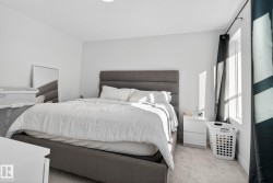 NO CONDO FEES! Welcome to Crystallina Nera, one of North Edmonton’s most family-friendly communities! This newer half duplex sits on a corner lot across from a green space, offering privacy, extra sunlight & plenty of parking. Inside, you’ll love the bright, open layout with 3 bedrooms up, 2.5 baths, and oversized windows filling every level with natural light—even the basement suite! The modern kitchen features stainless steel appliances, a large island & cozy living space for family nights or entertaining. Upstairs includes laundry & a spacious primary suite with walk-in closet and ensuite. The legal basement suite has its own entrance, kitchen, living area, bedroom, bath & laundry—perfect mortgage helper or turnkey investment. Complete with a double garage and a spacious yard.