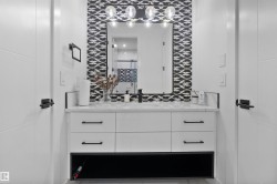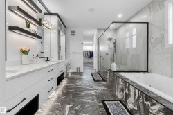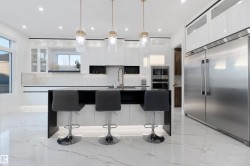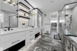 Located in the PRESTIGIOUS community ESTATES OF GRANVILLE, this CUSTOM-built two-storey home offers 3,675 sq. ft. of thoughtfully designed living space with quality finishes throughout. The open-concept main floor features 10-ft ceilings, BUILT-IN SPEAKERS, a CHEF'S KITCHEN with QUARTZ COUNTERTOPS, STAINLESS STEEL appliances, plus a SPICE KITCHEN, and a stylish ELECTRIC FIREPLACE. The upper level offers 9-ft ceilings and a spacious primary bedroom with a luxurious five-piece ensuite featuring HEATED CERAMIC FLOORING. The home also includes separate entrance to A FULLY FINISHED LEGAL BASEMENT suite and FINISHED IN-LAW suite, currently occupied. A rare opportunity to own a refined property in one of west Edmonton’s most sought-after communities. Exquisitely crafted with exceptional attention to detail, this home offers the perfect blend of luxury, comfort, and timeless design.