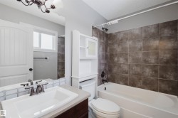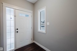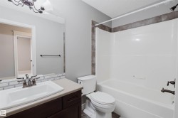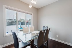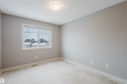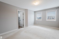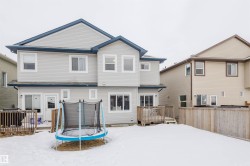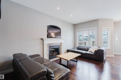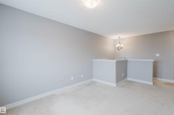 Welcome to this beautifully upgraded half duplex in the growing community of Cy Becker. Designed with functionality and style in mind, the home offers a bright open layout with engineered hardwood flooring across the main level. Large windows and a south-facing backyard create a warm, sun-filled living space throughout the day. The inviting living room is highlighted by a gas fireplace with tasteful wood detailing and tile surround. The kitchen is both stylish and practical, featuring granite countertops, stainless steel appliances, and a corner pantry, and opens to the dining area with patio doors leading to a spacious deck, ideal for summer gatherings. Upstairs includes three well-sized bedrooms, a full bathroom, and a versatile loft/bonus area suitable for a home office or play space. The primary bedroom offers a walk-in closet and a 4-piece ensuite. Ideally located with quick access to Manning Drive and Anthony Henday, and close to Manning Town Centre and Clareview Town Centre.