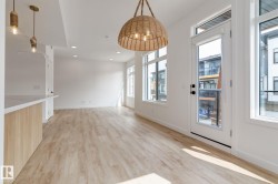 Discover contemporary living in Glenridding Essentials featuring the thoughtfully designed Birch model by award-winning Rohit Homes. This beautifully designed 3-storey showcases the serene Ethereal Zen interior palette. This stylish townhome includes 3 well-proportioned bedrooms, 2.5 bathrooms, and a double attached garage, blending functionality with modern design. The open-concept main floor is ideal for entertaining, with a highly efficient kitchen layout, dedicated pantry, and seamless flow between the living and dining areas. Enjoy not one, but private balconies, perfect for morning coffee or evening relaxation. The upper level features a spacious primary bedroom with ensuite, two generously sized secondary bedrooms, and convenient upper-floor laundry. Ideally located close to schools, parks, interconnected walking trails, Jagare Ridge Golf Course, Whitemud Creek Ravine, and the Currents of Windermere shopping and dining district. *Under construction, photos show layout and finishes, unit may differ.