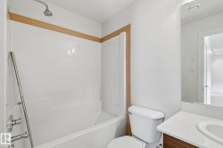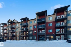 Welcome to the Radiance Condos! This TOP FLOOR unit offers 2 bedrooms, 2 bathrooms, In-suite laundry & a titled parking stall. Only steps to Eaux Claires transit station and walking distance to schools. parks, playgrounds, restaurants and shopping. Features an open layout with large living room. in floor heating, laminate flooring throughout adjacent to eating area. Spacious kitchen with modern kitchen cabinets, quartz counter tops & stainless steel fridge, stove, dishwasher & Microwave hood fan. Primary bedroom boasts a large walk-through closet and ensuite bathroom. Additional bathroom & 2nd bedroom are conveniently located on the opposite side of the unit, Great for guests/roommates or home office. In-suite laundry room with White stackable washer & dryer. Large balcony with gas hookup for summer bbqs. Easy access to 97 St and Anthony Henday drive. Quick possession available. Low condo fees and a well-managed complex make this a great choice!
