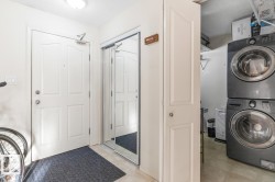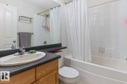 Top-floor living with unbeatable value! This bright and spacious 1-bedroom unit in Promenade Eaux Claires offers an open-concept layout with great natural light and a sunny south-facing covered balcony. The kitchen features plenty of cabinetry, a walk-around island, and flows effortlessly into the large living area, complete with a cozy corner gas fireplace and balcony access. The oversized laundry/storage room adds convenience and flexibility, while the 4-piece bathroom and generous bedroom complete the suite. Enjoy in-suite laundry, central air conditioning, and one titled above-ground parking stall visible from the unit. The building offers fantastic amenities including a fitness centre, social room with games and lounge areas. Condo fees include heat and water. All this in a prime location close to shopping, public transit, Anthony Henday, and every convenience. A great opportunity to own or invest in this well-managed north Edmonton community.