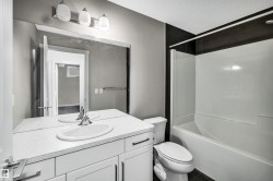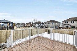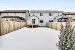 FULLY FINISHED w/Central Air Conditioning! Wonderful family home perched on a large lot on a no thru street! This home offers just over 2400 square feet of living space with a super functional layout boasting an open concept main floor with 9" ceilings, modern white kitchen, cabinets to the ceiling, corner pantry, high end stainless appliances, chimney style hood fan complimented by trendy backsplash, QUARTZ counters and island with eating bar, open to dining nook with patio door to the large attached back deck and fully fenced & landscaped yard done in beautiful artificial TURF, living room wi/big window flooding the home in morning light, down the hall to main floor den w/double French doors, completing the main floor is a half bath and mud room w/laundry, upper level offers 3 very spacious bedrooms, primary with walk in closet and full 4 piece bath, other 2 bedrooms share a full 4 piece bath, basement is beautifully developed with 9" ceilings, big family room, bedroom w/walk in closet & full bath.