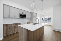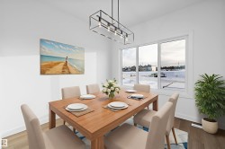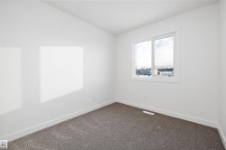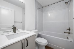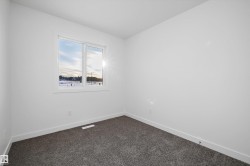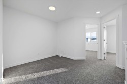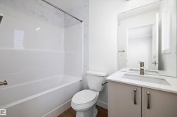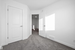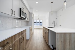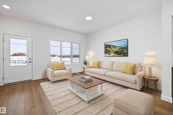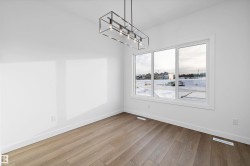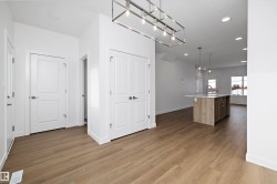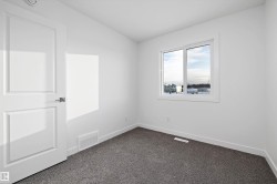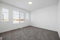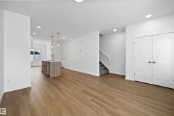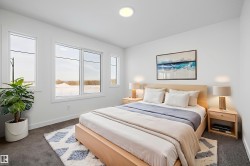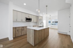 Step into elevated living with The Stellar, a thoughtfully designed home blending timeless style with modern functionality. Enjoy 9’ ceilings and luxury vinyl plank flooring throughout the bright main floor. The central kitchen features quartz countertops throughout the home, a Silgranit undermount sink, upgraded cabinetry, spacious pantry, and a large island with eating ledge and pendant lighting ideal for entertaining. The rear dining area overlooks the backyard and is complemented by a half bath and rear entry to a generous yard and parking pad, with the option for a detached double garage. Upstairs offers a versatile open loft, a spacious primary retreat with walk-in closet and 3-piece ensuite, two additional bedrooms, a full bath, and convenient laundry. Additional highlights include brushed nickel fixtures, 9’ basement ceilings, a separate side entrance, and basement rough-ins perfect for future development.