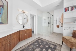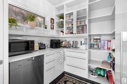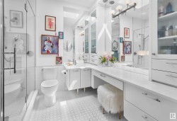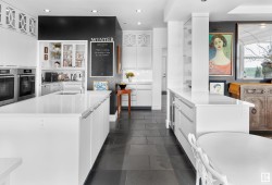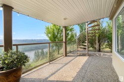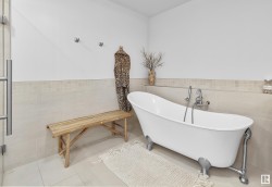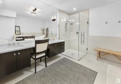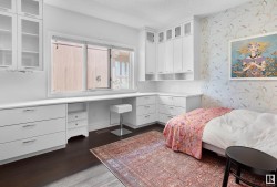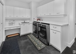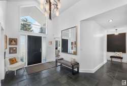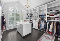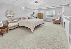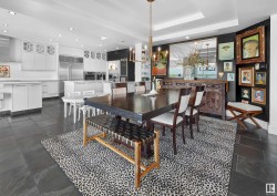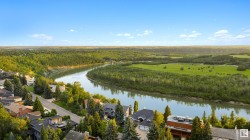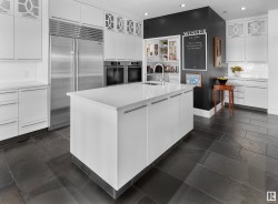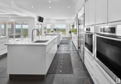 Designed for the executive, this walkout bungalow blends timeless elegance with modern comfort in prestigious Ramsay Heights. Nestled along the North Saskatchewan River with a west-facing yard, this brick home offers sunset views and a tranquil connection to nature. Exterior highlights include composite decking, exposed aggregate driveway and covered lower patio, artificial turf, and a private three-hole putting green. Inside, the custom kitchen features double islands, each with eat-up bars, double ovens, and a walk-in pantry, flowing into a spacious living area ideal for entertaining. The home offers two plus two bedrooms and four full baths, including a luxurious five-piece ensuite with a dream walk-in dressing room closet. Laundry on both levels adds convenience, and the triple attached garage provides direct interior access. A rare opportunity to live on the bank of Edmonton’s most iconic riverfront settings.