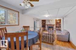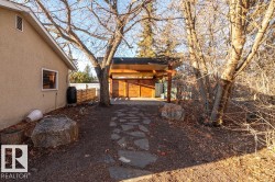 Welcome to 5004 144 St NW — a beautifully maintained one-and-a-half storey in Brookside, set on a large, sunny and PRIVATE corner lot. This home offers a versatile and family-friendly layout with a bright front living room and bay window, a generous dining area, and a welcoming kitchen overlooking the backyard. The cozy sunken family room features a GAS FIREPLACE and built-ins, creating the perfect everyday gathering space. A main-floor bedroom, laundry room, and powder room add convenience. Upstairs, the spacious primary suite includes a WALK-IN CLOSET and 2-pce ensuite, along with two additional bedrooms and a full bath. The basement hosts a SPACIOUS SAUNA, and a great layout for future development. Important updates include TRIPLE-PANE WINDOWS, furnace, CENTRAL A/C, roof, electrical panel, attic insulation, and vinyl siding. Outside, enjoy the beautifully landscaped yard with OUTDOOR ENTERTAINING SPACE, gazebo, and an oversized double garage. Steps to Brookside School and Whitemud Ravine.