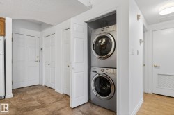Set in the heart of Garneau, this beautifully updated 2-bedroom, 2-bathroom condo offers an effortless blend of urban sophistication and everyday comfort. Designed for those who value both style and walkability, this home delivers a quiet retreat within one of Edmonton’s most dynamic neighbourhoods. Recent renovations elevate the interior w/ new carpet, fresh paint, updated countertops/backsplash, and a brand-new washer/ dryer, creating a polished, move-in-ready space. Solid concrete construction ensures low-maintenance, sound-resistant living, while in-suite laundry and titled heated underground parking add a level of convenience. Enjoy evenings on the spacious balcony, where warm light & city views create the perfect setting to unwind. Just steps from the University of Alberta, river valley trails, and the boutiques, cafés, public transportation and restaurants of Whyte Avenue. Ideal for professionals, students or urban buyers seeking a refined home in a premier location in a very well-managed building.