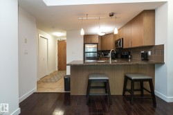 OWN UNIT 505 IN THE SERENITY TODAY! This meticulously kept 2 bedroom and 1 bathroom unit offers 9ft ceilings, floor to ceiling windows, dark cabinetry, eat-at counter area, quartz countertops, engineered wood & tile flooring throughout, stainless steel appliances. Two good size bedrooms and 4 piece bath. The balcony offers amazing downtown views. Also with this unit is in-suite laundry, one heated underground parking and visitor parking. This secure, quiet building is well-maintained with an excellent condo board & experienced management. Close by shopping, and restaurants with River Valley access, public transit and much more!
