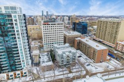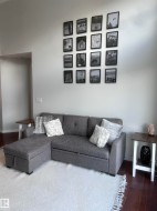 Recently renovated top floor loft style condo in Grandin! This East facing 2 bedroom and 2 full bath open concept floor plan is great for room mates. Features include infloor heating, soaring 12' ceilings, ceramic tile and laminate floor, rounded corners, lots of natural light, insuite laundry & storage. Kitchen has sharp white cabinetry, island and eating bar. Large primary bedroom has walk-in closet and 4 piece ensuite. The huge balcony off the living room has a gas line for bbq. Titled underground parking stall comes with the unit. Located in the ultra convenient Grandin area of Oliver one of Edmonton's most sought after communities. You are steps off Jasper Ave, 1 block to a grocery store, walk 5 mins to LRT (light rail transit) Government Centre stop, 6 mins to Corona LRT, restaurants, the river valley trail system, and parks. Excellent setup for students with University of Alberta, Grant MacEwan and NAIT easily accessible by car or transit. The seller will also repaint the unit prior to possession.