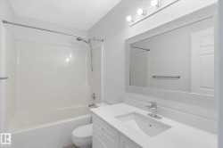 Located in the hidden gem of west EdmontonTerra Losa! This home is steps from walking trails, a park, shopping, & lake. This fully finished home has a white kitchen with brand new quartz counter tops, sink, new stainless steel fridge, luxury vinyl plank flooring. Eating area leads to patio doors & deck w/ privacy wall where you can enjoy the seclusion of the treed backyard. Laminate floors gleam in the living room with the sunny south facing window & there is a gas fireplace to keep you warm. Updated 2 piece powder room and updated light fixtures rounds out this level. Upstairs there are 3 bedrooms including a master bedroom with full ensuite & vinyl plank flooring. The main bathroom upstairs also features vinyl plank flooring and quartz counters. The basement has family room with large window and the laundry room. Furnace and hot water tank have both been replaced in the last few years. Single garage is an added bonus. Enjoy a quiet walkable area that blends natural beauty w/ urban convenience.