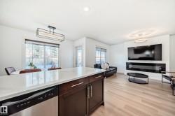 Rare find in Hollick Kenyon! This updated 3-bedroom, 3 full bathroom half duplex offers over 1,900 sq. ft. of living space on a large lot. Nearly the entire home was renovated in 2022. Features include vinyl plank flooring on the main and upper levels, updated light fixtures, and a bright open-concept main floor with an electric fireplace. The kitchen showcases white quartz countertops, a new backsplash, and updated faucet, with matching quartz in the ensuites. Upstairs, each bedroom has a walk-in closet and private ensuite, plus second-floor laundry for added convenience. The fully finished basement offers a family room, third bedroom, and full bathroom. Ideally located close to elementary schools, shopping, and amenities—this move-in-ready home is a must-see.