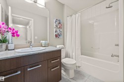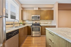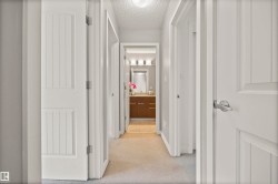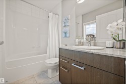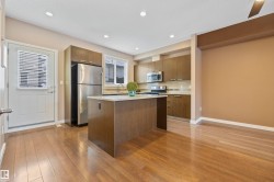 This spacious 3-storey townhouse offers 3 bedrooms, 2.5 bathrooms, and a double attached garage, providing ample room for families or professionals seeking comfort and functionality. The bright, open-concept main living area is ideal for both everyday living and entertaining. The kitchen features granite countertops, soft-close cabinetry, stainless steel appliances, and a practical layout that flows seamlessly into the dining and living spaces. Step outside to the private deck with a gas hookup, perfect for summer barbecues and outdoor relaxation. The primary bedroom is a true retreat, complete with a 4-piece ensuite and his-and-hers closets. The additional bedrooms are well-sized and thoughtfully arranged across the upper levels, offering flexibility for family living, guests, or a home office. Residents enjoy access to a social clubhouse, adding extra value and convenience. Ideally located near parks, shopping, and Edmonton International Airport, this home combines modern design and generous space.