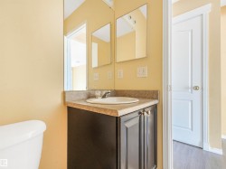 Welcome to this spacious and well-maintained 3-bedroom, 2.5-bathroom townhouse, perfectly situated in a desirable South East Edmonton community. Spanning 1,400 sqft, this home offers the ideal balance of low-maintenance living and comfortable space. Step inside to a bright and open living area with large, south-facing windows that fill the home with natural light year-round. The modern kitchen is a true highlight with dark cabinetry, stainless steel appliances, and a spacious layout. Upstairs, the cozy bedrooms feature plush carpeting and ample natural light, with the master bedroom offering an ensuite bathroom and a walk-in closet. The home also features an unfinished basement with endless potential, ideal for adding another living room, bedroom, and bathroom to suit your family's needs. Enjoy your morning coffee or evening barbecue on the private deck, which overlooks a tranquil green space. The unit includes two dedicated parking stalls conveniently located directly in front of the townhouse.