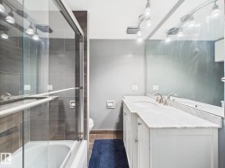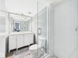 The CONDO FEES INCLUDE: HEAT, WATER & ELECTRICITY!!! FULLY RENOVATED CONDO IN OLIVER Walking Distance to the Legislature & Down town Core. This beautifully updated 2BR/2BA condo is just a block from Jasper Ave, river valley paths, dining & shopping. There is an LRT Station just across the street. The condo, in a well-managed building. It features ceramic and laminate flooring, a modern kitchen with granite counters, stainless appliances, and under-cabinet lighting. Enjoy west-facing views of downtown and the river valley through large windows. The living area is roomy with a flexible space for an office or reading area. The primary bedroom offers ample closet space and a fully renovated ensuite bathroom. The second bedroom and main bathroom are nicely decorated and spacious. Extras include an fabulous balcony, in-suite laundry, underground parking, and a storage locker. The building boasts a gym, social rooms, sauna, and outdoor patio. This is not just a condo it is a home waiting for you!