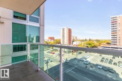 Discover this stylish 2 bed, 2 bath condo just steps from Edmonton’s best restaurants, cafes, shops, the Victoria Promenade, and the breathtaking River Valley. Designed with a bright open-concept layout, this home features cork flooring, granite countertops, stainless steel appliances, and central A/C. The functional floor plan offers ample storage, in-suite laundry, and a private north-facing patio. The spacious primary bedroom includes a large walk-in closet and a 3-piece ensuite, while the second bedroom and full bath provide versatility for guests or a home office. Condo fees cover heat, water, and electricity for added convenience. Secure underground parking adds peace of mind. With modern finishes, smart design, and an unbeatable walkable location, this concrete & steel-built condo offers the ultimate blend of comfort and lifestyle.