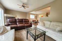 Imagine walking your kids to school — no car needed, just a short stroll to Corpus Christi Catholic (K–9). This beautifully maintained 1520 sqft half duplex offers true family-friendly living. Step inside to a spacious entrance that opens into a unique multi-level layout. The main living area blends comfort and style with upgraded flooring and appliances. Upstairs, 3 bedrooms give everyone space to recharge, including a primary suite with a private ensuite. The real highlight? A soaring bonus room with high ceilings — perfect for movie nights, playtime, or a home office. With 2 additional bathrooms for convenience, this home is designed for growing families who need both space and function. Outside, a large backyard is ready for BBQs, a playset, or your dream garden. Located in a quiet, family-oriented community with all amenities just 5–10 minutes away, this home is clean, well cared for, and full of character