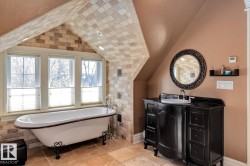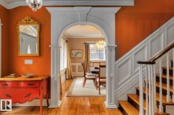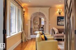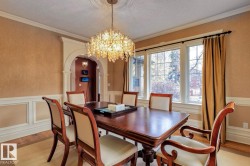 Stunning 5000+ sq.ft. 6-bed, 7-bath luxury estate in Edmonton’s prestigious Highlands, one of the city's top 10 historical neighborhoods. This historic home has undergone a million-dollar transformation—stripped to the studs and rebuilt with a new 9' R50 ICF foundation. Old-world charm meets modern efficiency with a chef’s kitchen, formal living and dining rooms, spa-like master retreat, loft space with full bedroom + full bathroom, and even a dog shower. High-end finishes include granite, slate, travertine, and hardwood, with custom mouldings, solid core doors, and detailed trim throughout. Double insulation, gated driveway, triple garage, and beautifully landscaped yard add to the appeal. A rare opportunity to own a fully restored historic gem in one of Edmonton’s most iconic communities.
