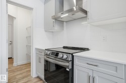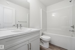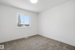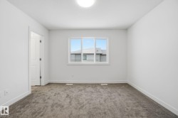 Experience parkside living at Copperwood Close by Ironstone Home Builders, a thoughtfully designed community set alongside the forested trails of The Grange District Park. This modern farmhouse–inspired home offers 1,611 sq.ft. of well-planned living space with 4 bedrooms and 2.5 bathrooms. The open-concept main floor features 9’ ceilings, luxury vinyl plank flooring, and a bright, inviting living area. The kitchen is finished with quartz countertops, upgraded appliances, and generous cabinetry, flowing naturally into the dining space. Upstairs, enjoy the convenience of upper-floor laundry, a spacious primary bedroom with walk-in closet and private ensuite, plus three additional bedrooms and a full bath—perfect for growing families or those needing flexible space. Complete with a double attached garage, rear deck, full landscaping, and backed by a 10-year Alberta New Home Warranty. A rare opportunity to live steps from nature in The Hamptons. Interior pictures are representative of similar model.