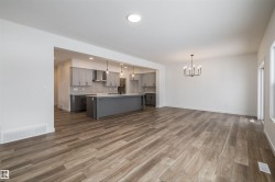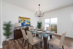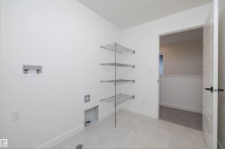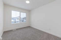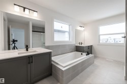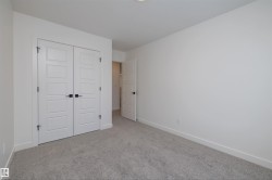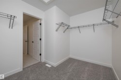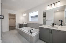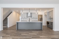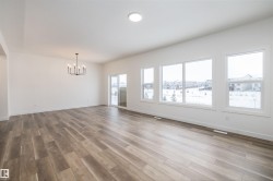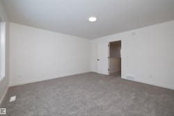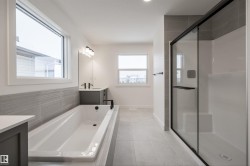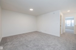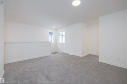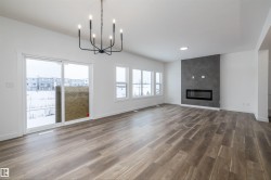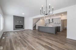 The Charleston offers 2,289 sq. ft. of refined family living, featuring 9’ ceilings and Luxury Vinyl Plank flooring. This open-concept layout includes a separate side entrance and a striking kitchen equipped with a massive island, Quartz surfaces, and custom soft-close cabinetry. A standout feature is the oversized walk-in butler’s pantry with a prep sink, seamlessly connecting the mudroom to the chef’s space. The rear of the home is anchored by a fireplace with a custom surround and expansive windows that overlook the backyard. Upstairs, the primary retreat boasts a 5-piece ensuite with a soaking tub and a walk-in closet that connects directly to the laundry room. A central bonus room serves as a family hub, flanked by two additional bedrooms with private walk-in closets. Finished with matte black plumbing and lighting fixtures, this home combines practical storage with high-end style.