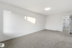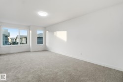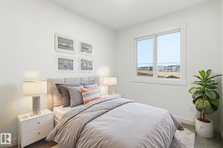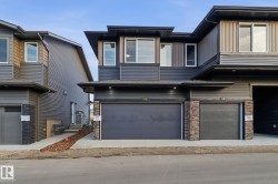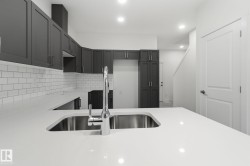 Welcome to this BRAND-NEW stylish END UNIT townhouse with a DOUBLE ATTACHED GARAGE in The Orchards, South Edmonton. Featuring 3 bedrooms, 2.5 bathrooms, and quartz countertops throughout, this home blends comfort and modern design. The main floor offers a bright open layout with a contemporary kitchen with island seating, dining area, living room, half bath, and access to a finished backyard deck. Upstairs, the primary suite includes a walk-in closet and 4pc ensuite, plus two additional bedrooms, a 4pc bath, and convenient laundry. The unfinished basement offers potential for future development. Located in a family-friendly community close to schools, parks, transit, grocery stores, and The Orchards Centre with popular shops and dining. Only 20 minutes to the airport and Premium Outlet Mall, with quick access to Hwy 2 and the Anthony Henday. Move-in ready!